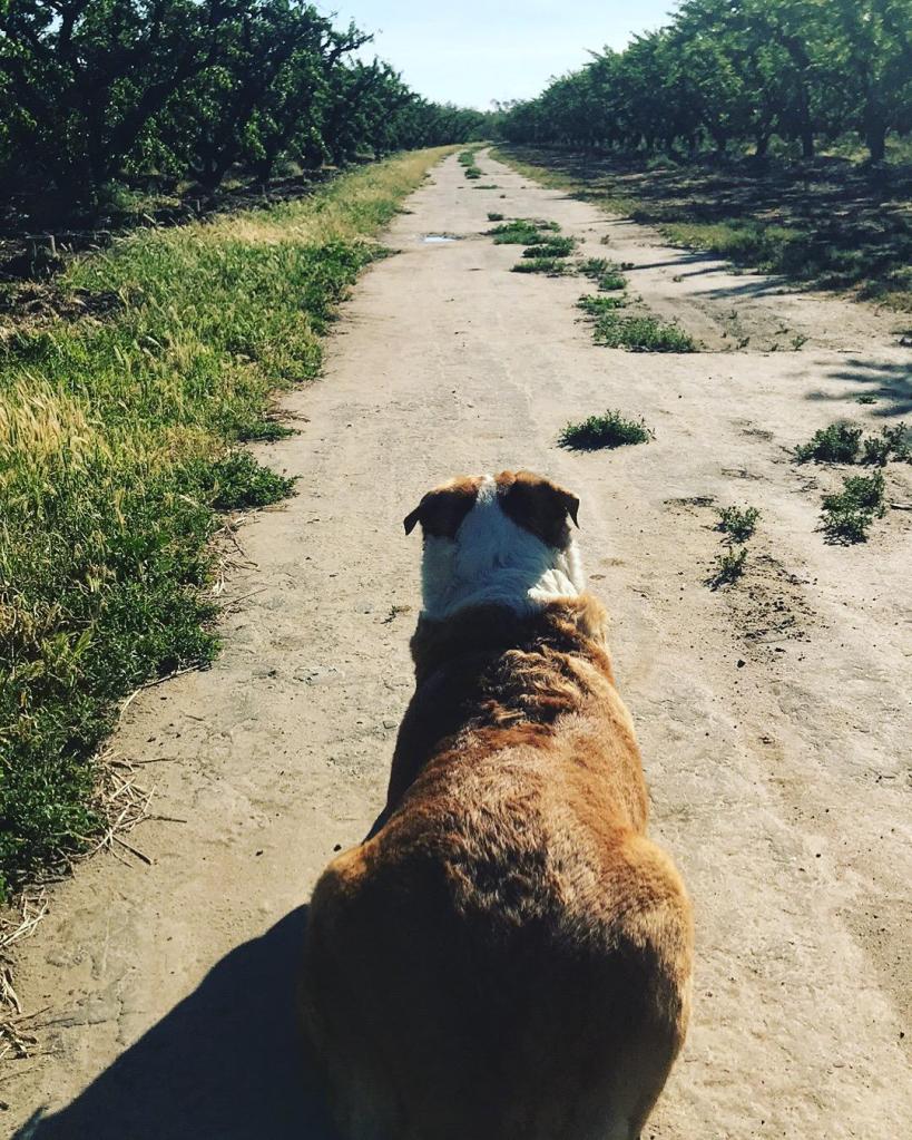 After a few minutes we came upon a patch of weeds. They were wet with dew and dense. This patch of weeds wasn’t pleasant, but Buster plowed through them, not fazed at all by their texture, wetness, height or the fact that he temporarily couldn’t see to the other side. He knew where He was going. He knew the weeds were temporal. And so, he kept his pace. Then he came upon a rotting peach.. his paws brushed against it, not missing a step or letting it interrupt his stride, it was a minor nuisance. Along with the weeds and the peaches, came an occasional broken branch. Buster kept moving forward hopping over every twig. He kept his stride, no matter what was in his path. I thought to myself, boy the Buster dog has had a lot of obstacles in his journey this morning, and he keeps going. He was unfazed by what was surrounding him.